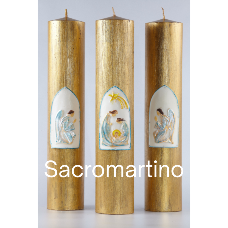 B4-Szopka Zestaw trzech świec- złote , 8cm, 40 cm